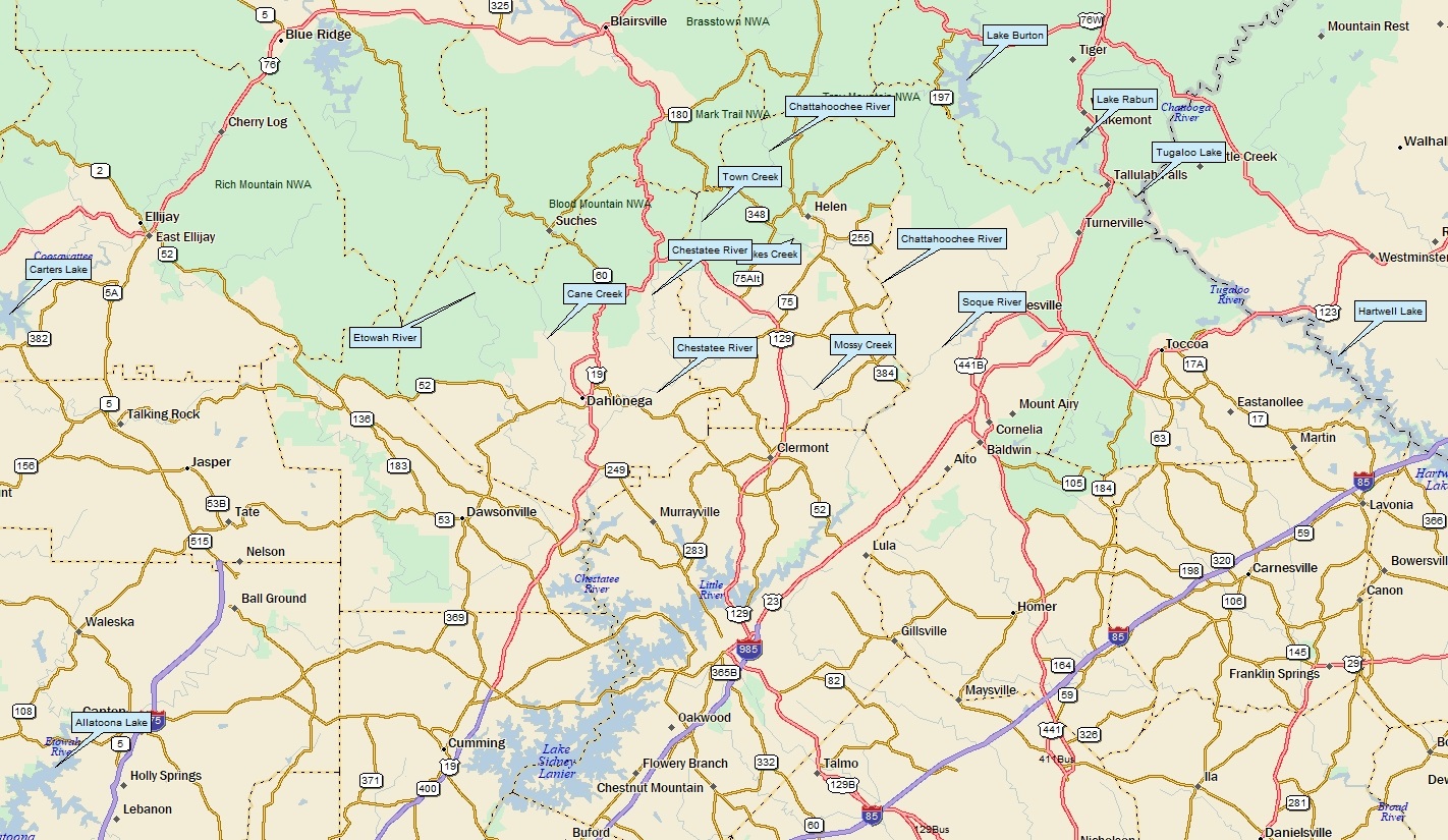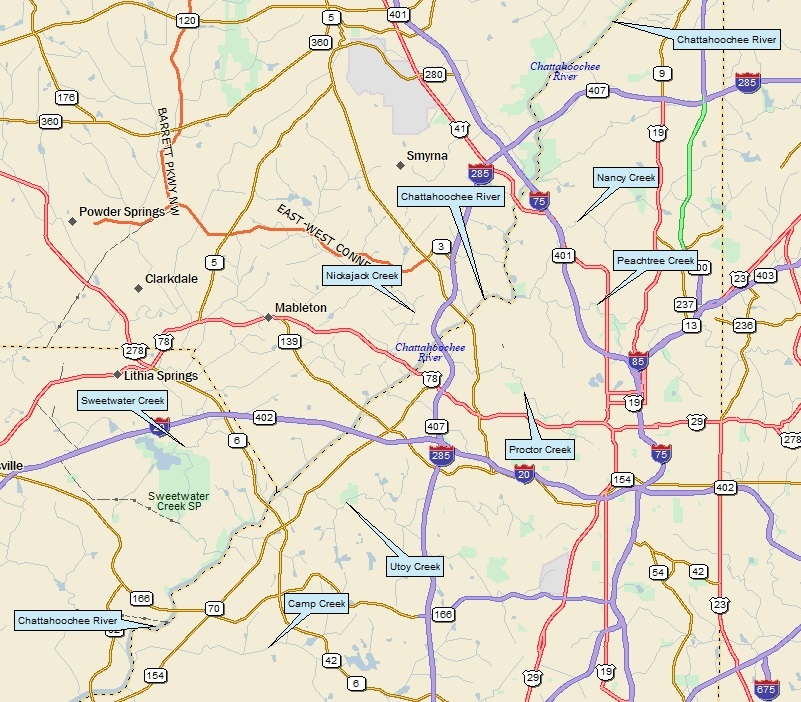 Lake Lanier Downstream, south of I-285 w/roadmap